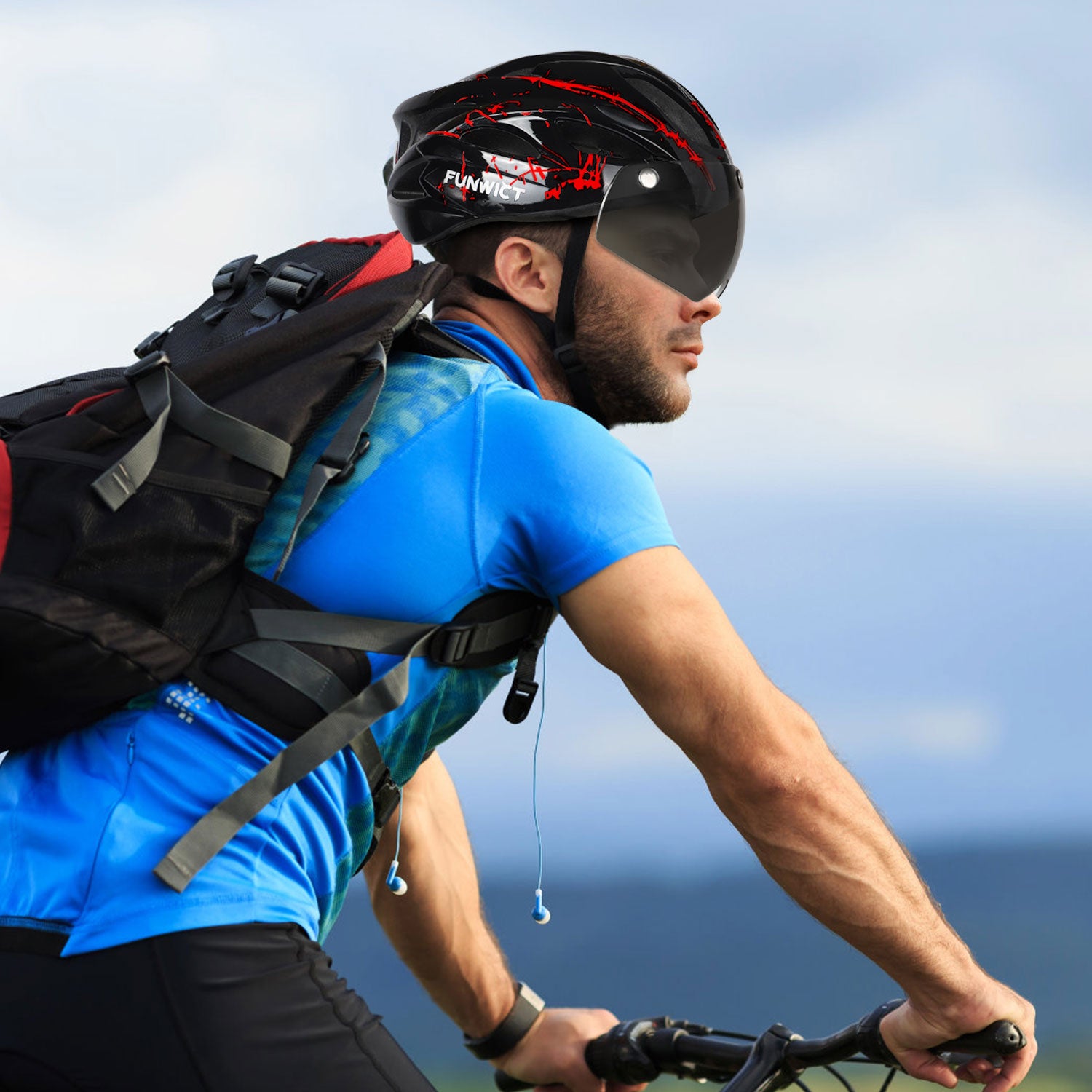 FUNWICT Bicycle Helmet with Light and Magnetic Goggles Lightweight Bike Helmet for Adult Men Women