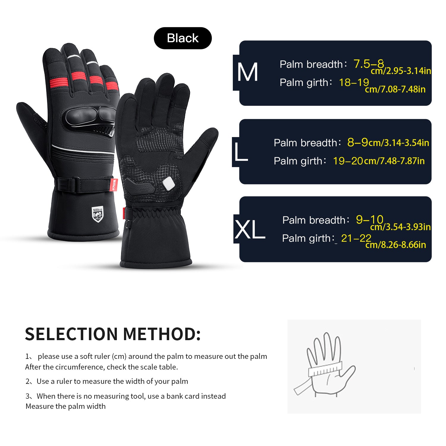 - Wear-resistant silicone gel in palm part increases the grip on motorcycle handlebars to improve driving safety.